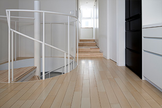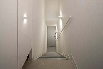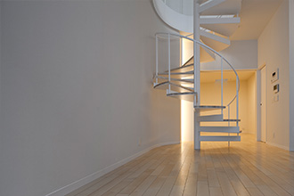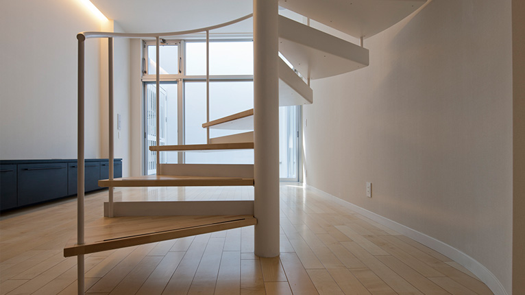 螺旋階段が印象的な白と黒のソリッドな空間構成の住宅を担当