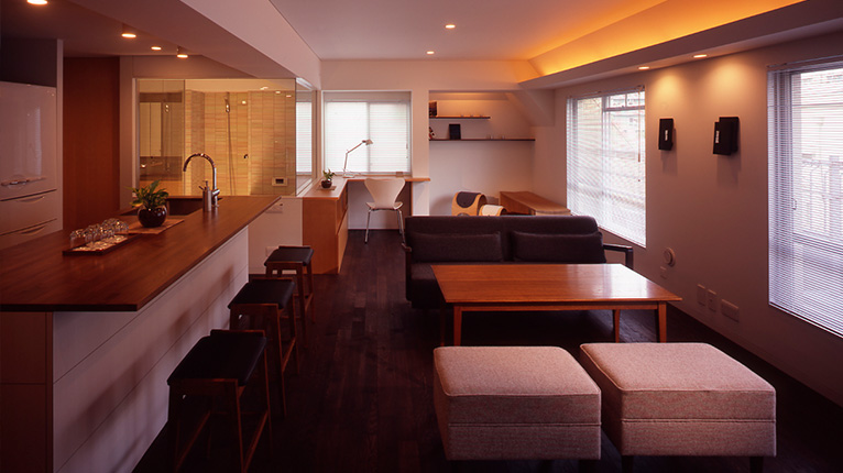 水廻りを含め、全てのレイアウトを一新して暖かみがありながらも洗練した一体感のある空間に。